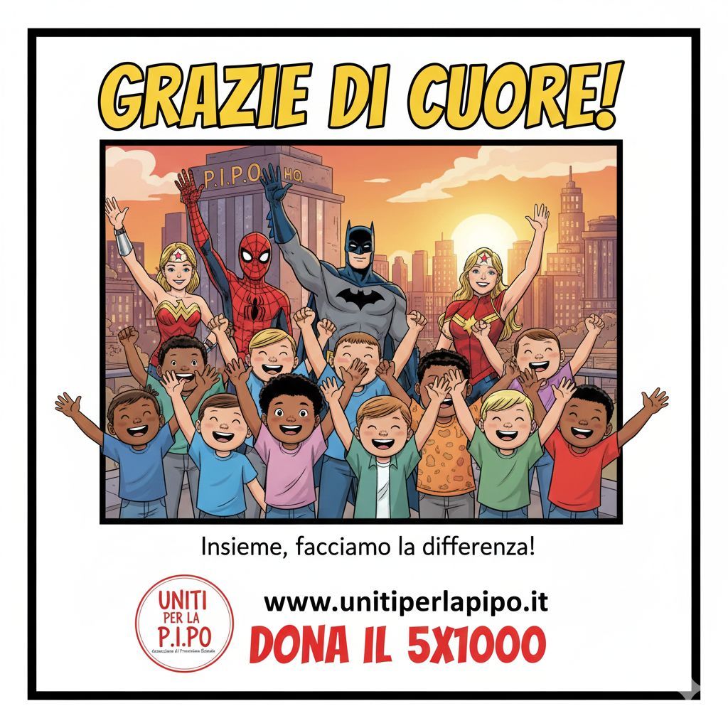 Uniti per la PIPO ha ottenuto la disposnibilità dei SUPEREROI più famosi di sempre per AIUTARE I BAMBINI affetti da POIC!